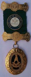 All Scottish Freemasonry in India, to be Honorary Members. A Centenary Medal with the effigy of Bro. Maneckjee Cursetjee was struck, and a full size portrait of late Bro. Sir Phiroze C. Sethna, a Past Master of our Lodge, and Grand Master Depute, A.S.F.I., painted by Bro. Sorab M. Pithavala, a member of our Lodge, was unveiled in Freemasons' Hall on the Centenary Day. A brochure containing a short history of the Lodge, prepared by Bro. F.B. Vachha, was printed and circulated on the Centenary Day. The Lodge will always remain indebted to Bro. Vachha for his labour of love and also to Bro. D.F. Wadia for his admirable and illuminating History of the Lodge from 1843 to 1911. With the passage of time none of the lodge members had a centenary jewel. In August 2013 a member spotted a centenary jewel for sale on eBay, and our Bro Shavak Kapadia was quick to procure it from eBay. The picture shown is the one procured from eBay; and the lodge is indeed indebted to Bro Shavak Kapadia for this jewel.  |